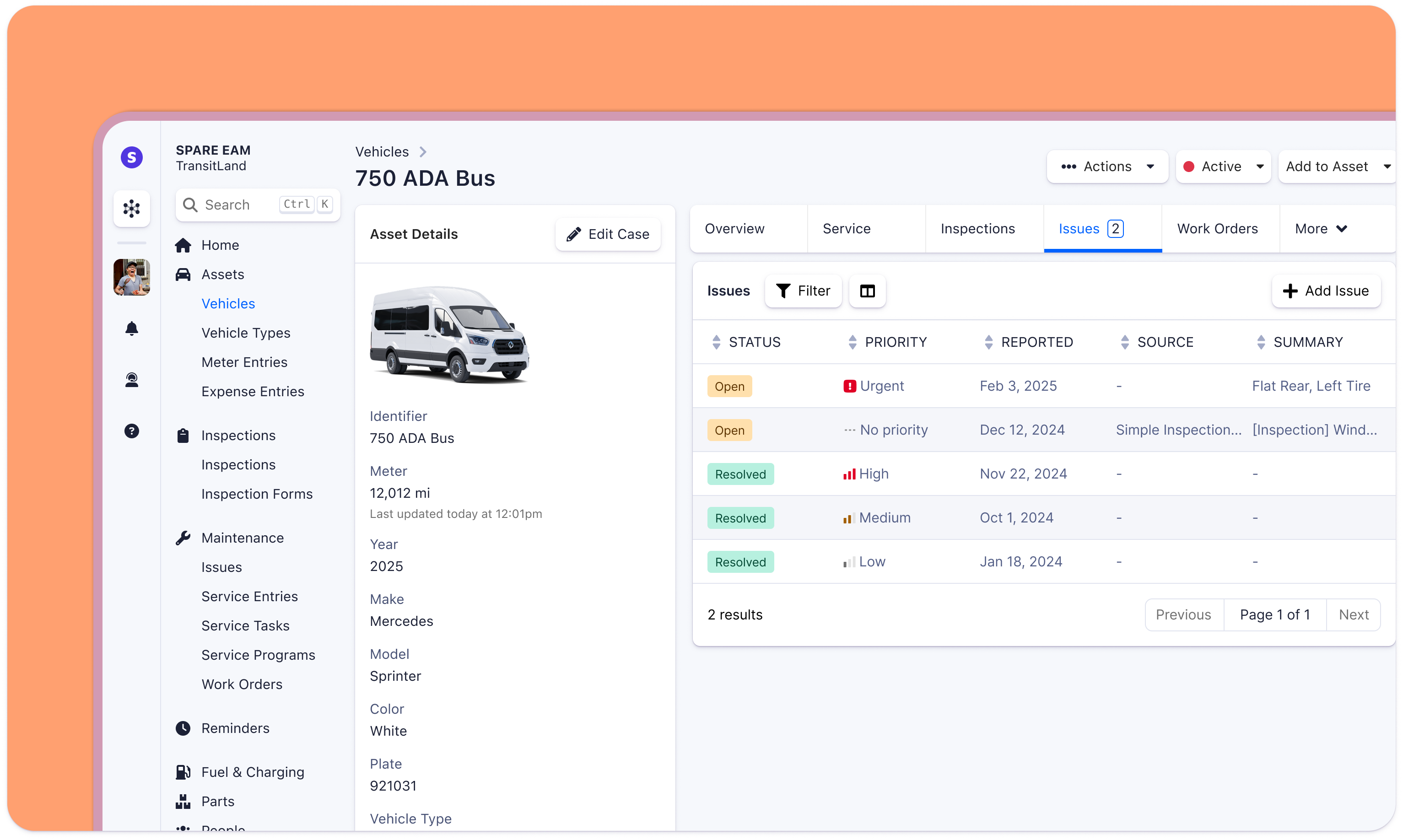 Spare’s EAM platform helps you manage every asset that keeps your transit service running — from vehicles to facilities — with AI-powered tools built for the way transit really works.