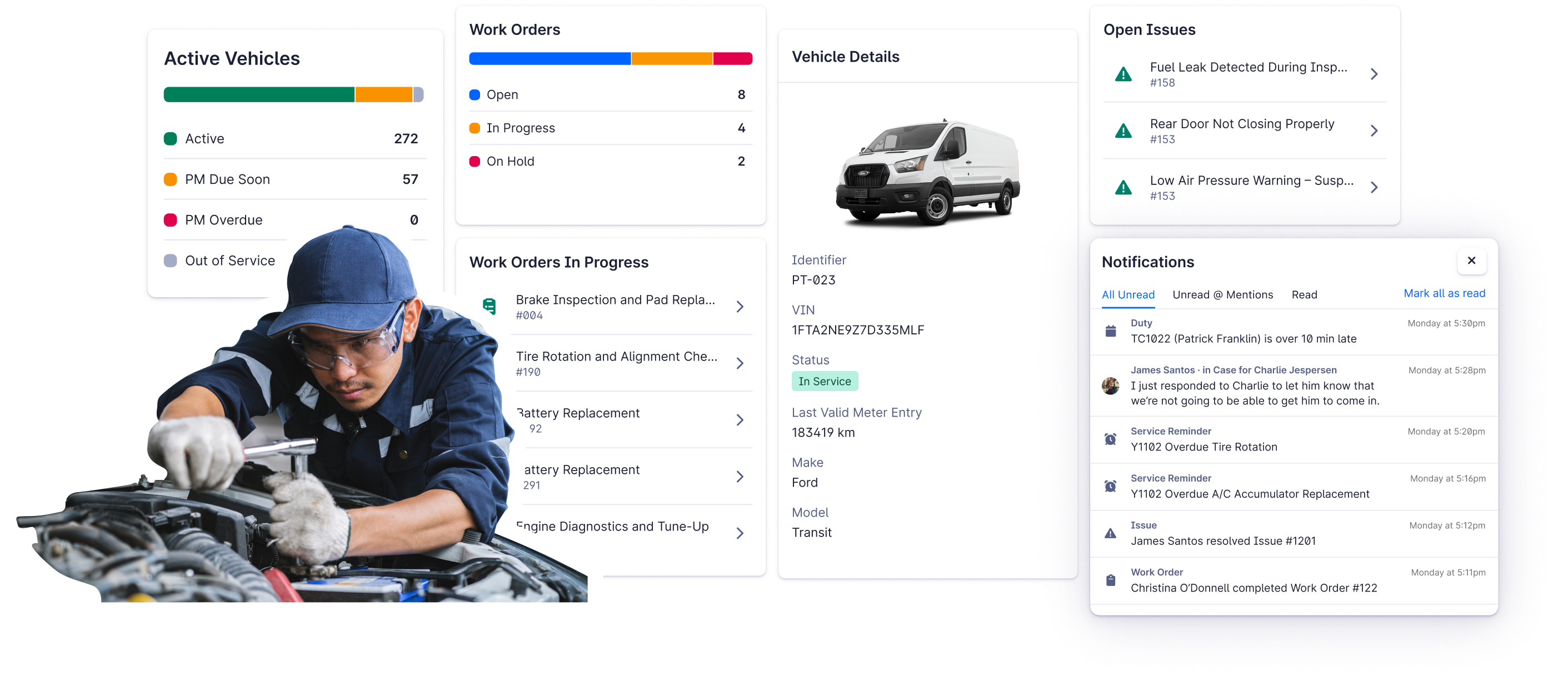 Proactive maintenance that predicts issues, aligns garage and dispatch operations, and ensures every vehicle stays safe, efficient, and ready for service.